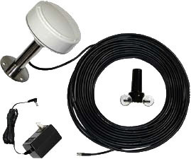 Super-Radiator is a complete ready-made kit, consisting of an active outdoor GPS antenna, typically mounted on the roof of a building to pick up signals (using included mount), a repeater unit to re-radiate the GPS signal indoors, and a 40 meter coaxial cable that connects the two (custom cable available on request). Equipment with a clear line of sight up to 10 meters (100ft) away can easily pick up a GPS signal. For a larger area, see Xtreme-Radiator or ask us about a custom solution.